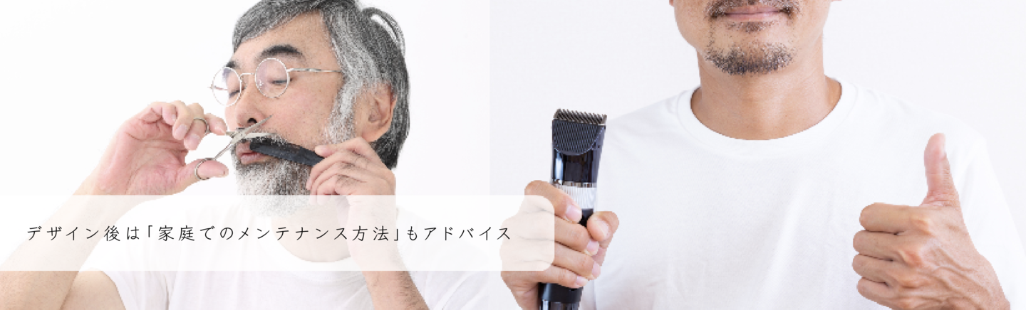 ただ「生えているから伸ばす」のでは「無精ヒゲ」であり、第三者への印象リスクが大きくなります。ヒゲデザインは「メイク」と同じだと考え「ヒゲデザイン理論」に基づき、その人にあったデザインを提供いたします。