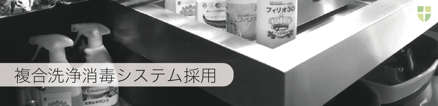 家庭用漂白剤(塩素系消毒剤)6%原液と同じ除菌力をもち、塩酸(酢酸)を使用しない特許生成「弱酸性高濃度高純度次亜塩素酸水溶液フィリオ30」を使用し、菌・ウイルスを速やかに不活性化して法定消毒工程を効率的にいたします。